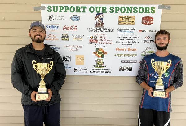 The 2025 IBF Team Bass Tournament benefitting Riley Children’s Foundation Hosted By R & B Car Company was a bit success with 75 teams entering the tournament. IBF members Jesse Richardson of Ligonier, IN and Dalton Pinkerton of Syracuse, In won with five bass weighing 18.71 pounds. Joe Childs and Mason Willis of South Bend, IN were 2nd with 16.62 pounds. Finishing 3rd was Rich and Gage Milleer from Demotte, IN with five bass weighing 15.21 pounds, They also claimed the Pro-Time Metal Roofing Big Bass which weighed 4.95 pounds. Claiming the Boys Plumbing and Heating highest placed male/female team was Lee Duracz and Jordan Morris of Syracuse, IN. They finished 11th with 5 bass weighing 11.58 pounds. The Trailmaster Trailer Long Haul Award went to Jack Walsh who drove from Cincinnati, OH to fish the tournament. The event enabled the Indiana Bass Federation to donate $5,350 to the Riley Children’s Foundation which will be used to help Camp Riley, a summer camp for kids with disabilities. The 2026 tournament will be held again on Lake Wawasee using the ramp on Syracuse Lake. Anyone needing a entry form can contact Mike Goins at mgoins521@outlook.com